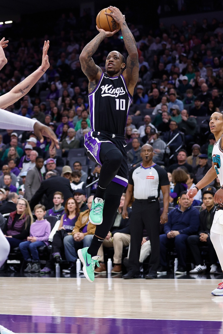 德罗赞:我打球从不系鞋带 小时候怕把鞋弄皱了就不系 后来习惯了