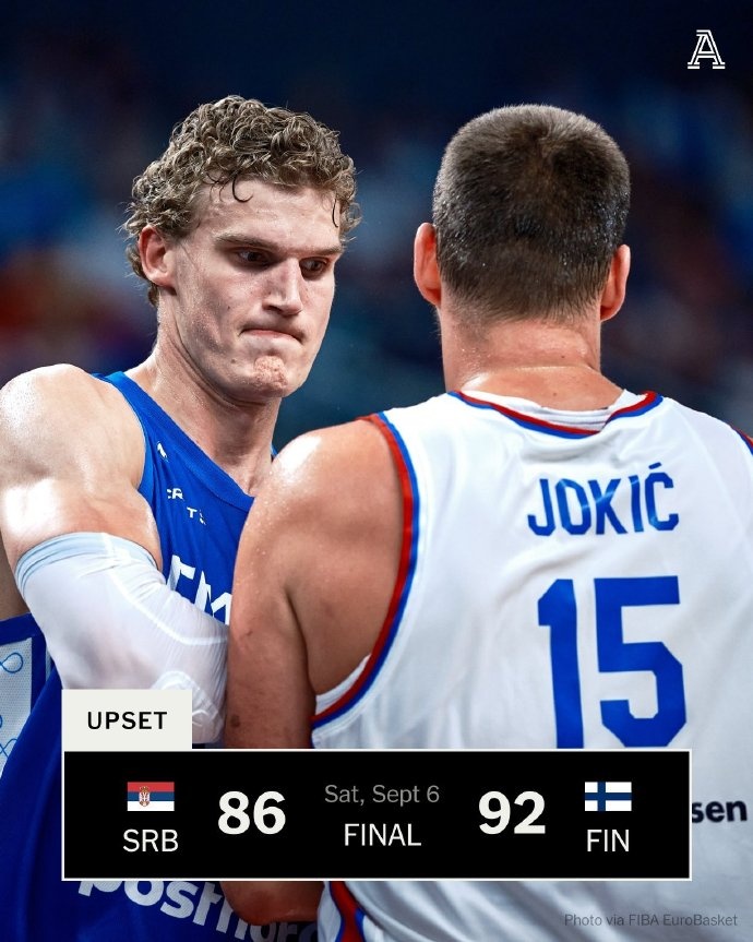 9月7日讯 男篮欧锦赛1/8决赛,塞尔维亚86-92爆冷不敌芬兰。