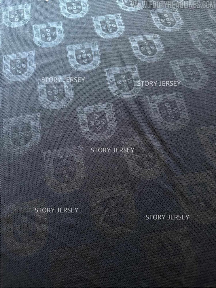 葡萄牙2026年特别款球衣以黑色为主色调,通体饰有1914年至1966年间葡萄牙足协使用的历史性盾徽暗纹。