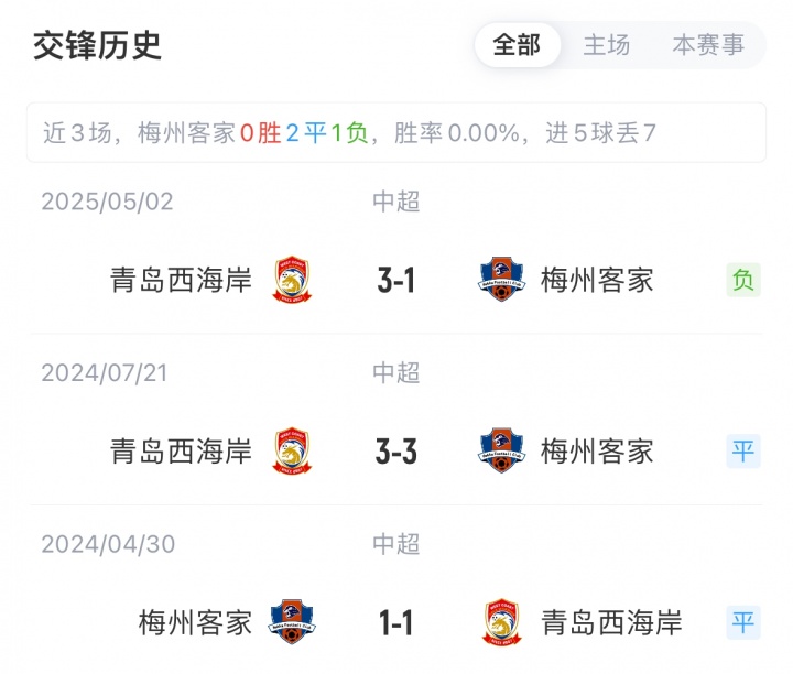 目前,梅州客家4胜5平14负积17分位列中超第14,距离保级区仅高出1分;西海岸6胜9平8负积27分位列中超第11。