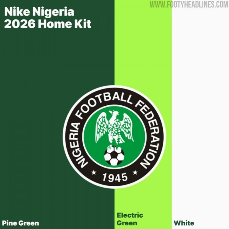 尼日利亚2026年主场球衣配色曝光:松林绿+电光绿+白色