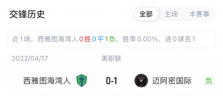 迈阿密国际此前与西雅图海湾人只有一次对决,他们在2022年4月的美职联比赛在0-1不敌对手。梅西将率队冲击队史第三冠、个人第47冠。
